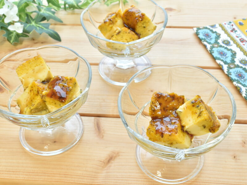 | 5 | ④を170℃のオーブンで50~60分焼き、粗熱を取り冷蔵庫で2~3時間冷やす。 |