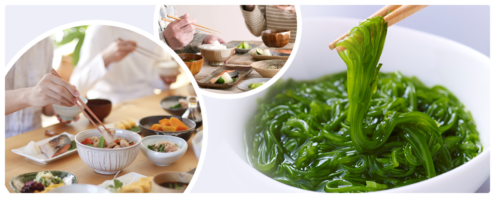 糖質の摂り過ぎは、様々な疾患の発症と直結しています。メカブ1カップ(35~40g)を食事の最初に摂取するだけで手軽・簡単に食後の血糖値の上昇が抑えられます。カネリョウ海藻では食後高血糖をコントロールする新しい食べ方として“食べる前に食べる”、「めかぶファースト®(シーベジタブルファースト®又はシーベジファースト®)」の実践を提唱します。